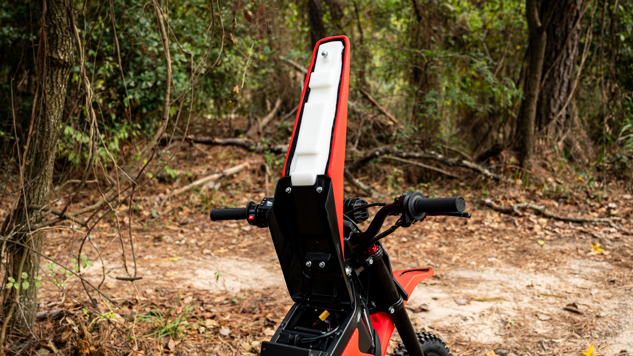 This is not a commuter Ebike. It’s a purpose-built mini dirt bike for backyard tracks, dirt trails, ranch land, dunes, and short-distance play riding.