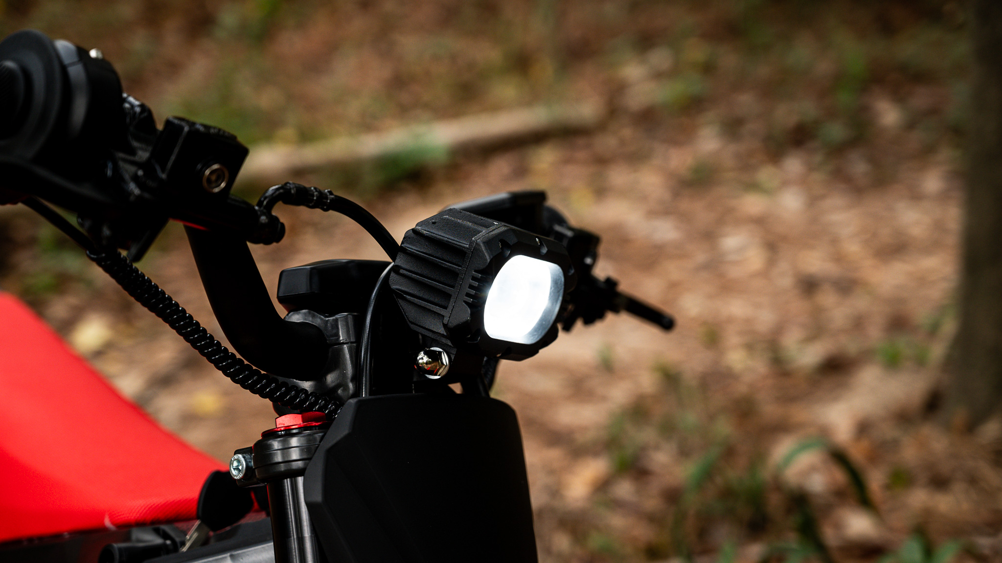 One of the big pluses of the IN 10 is the fact that you have an integrated front light. Most of the other bikes in the e-dirt bike category do not, so this is definitely a huge plus for those who plan on doing any riding after dark, or are just looking for some extra visibility for safety.